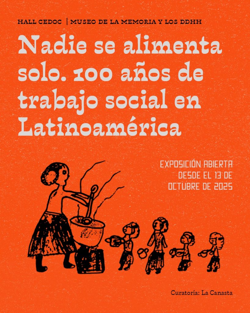 En el marco del XXIV Seminario Latinoamericano de Escuelas de Trabajo Social – ALAEITS 2025, se inaugura la exposición “Nadie se alimenta solo. 100 años de trabajo social en Latinoamérica”, una propuesta del colectivo La Canasta junto al Museo de la Memoria y los Derechos Humanos de Chile y la Escuela de Trabajo Social de la Universidad de Chile.